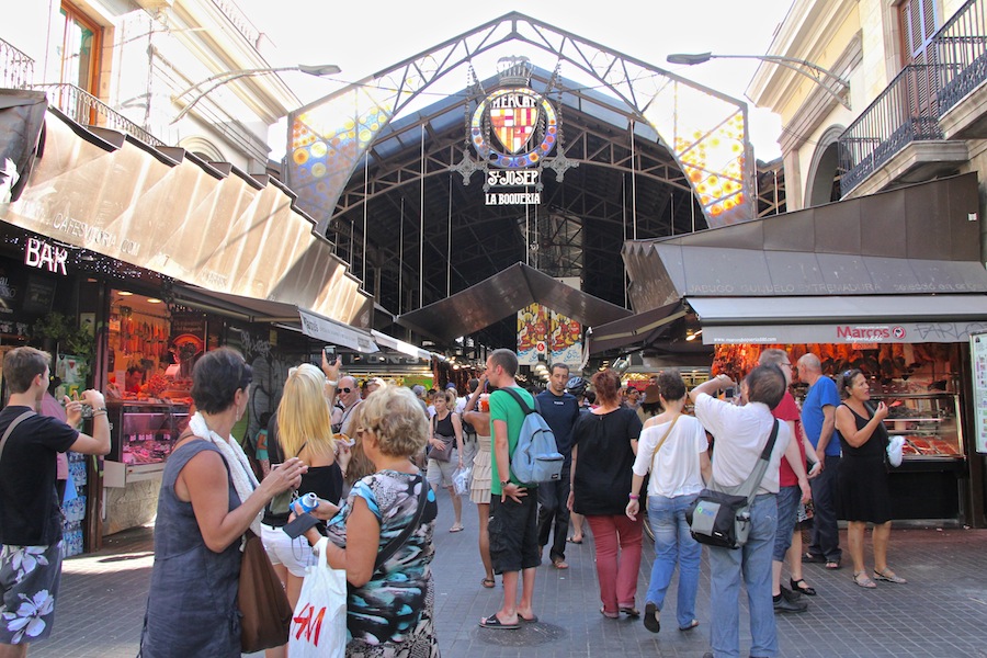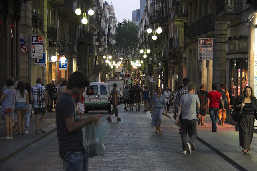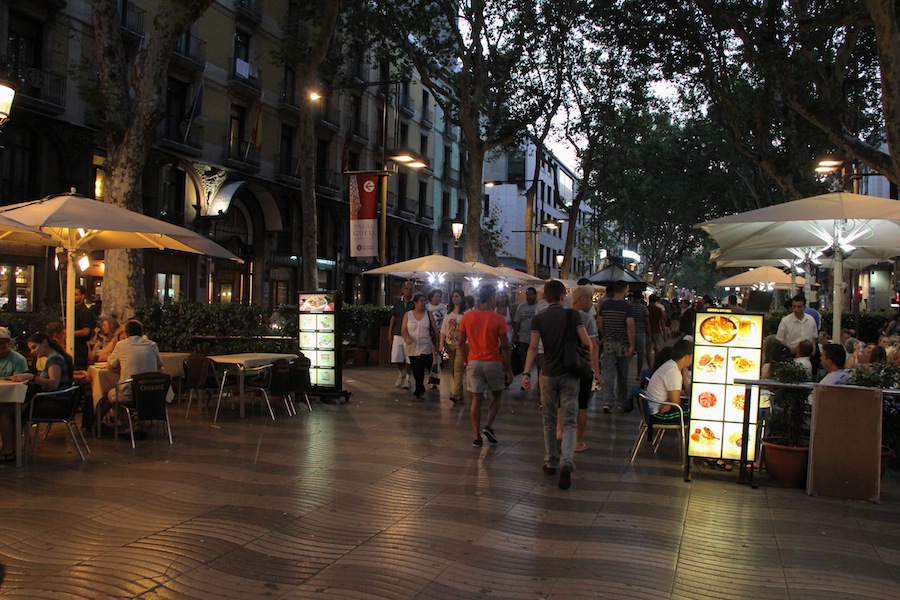 وأنت في شارع لا رمبلا يوجد العديد من المحلات والمطاعم على طول الشارع
