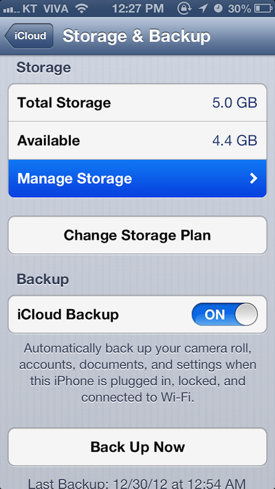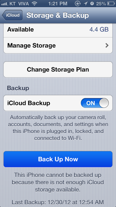 بعد تحديد البرامج التي تريد مزامنتها قم بتشغيل المزامنة iCloud Backup ثم نسخ احتياطي الآن Back Up Now