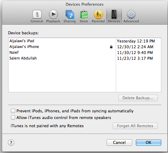 وشاهد أسماء الأجهزة الموجوده لهم نسخ احتياطية على الجهاز