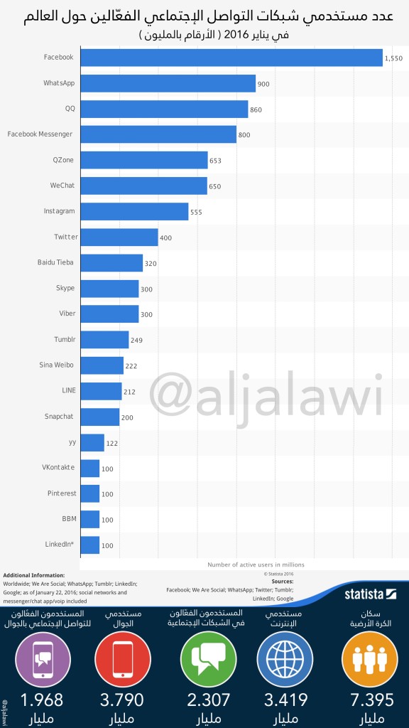 إحصائية شاملة لعدد مستخدمي مواقع التواصل الإجتماعي الفعّالين .. لأن العدد الفعلي أكثر بكثير لكن ليس كل مستخدمي هذه الشبكات